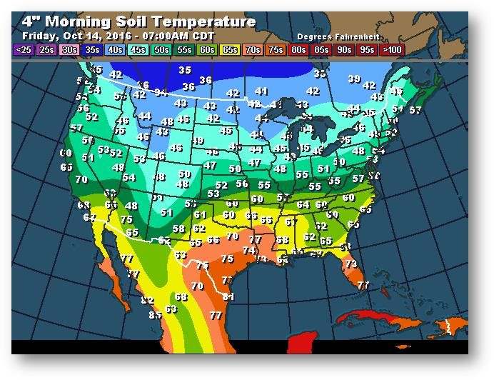 Température du sol en matinée à une profondeur de 4 pouces (degrés Farenheit)