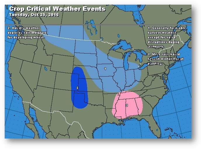 Hier, le contrat à terme de décembre (CZ6) a chuté de 0,0625$ et a clôturé en baisse de 0,0425$. La pression de la récolte a contribué aux pertes, de même que les inspections à l'exportation décevantes et les ventes des fonds. Les inspections à l'exportation ont révélé un résultat de 542 milliers de tonnes, ce qui est nettement inférieur à la moyenne hebdomadaire nécessaire pour atteindre la prévision du USDA. La récolte se poursuit à un bon rythme; elle est maintenant complétée à 61% comparativement à une moyenne de 57% pour les dix dernières années. Les conditions météo demeurent favorables pour les 6 à 10 prochains jours. Il y aura de la pluie dans la Corn Belt au cours des deux prochains jours, mais des températures au-dessus de la normale assècheront le tout ensuite. Il semble que le prix du maïs revient dans sa fourchette entre 3,20$ et 3,60$.