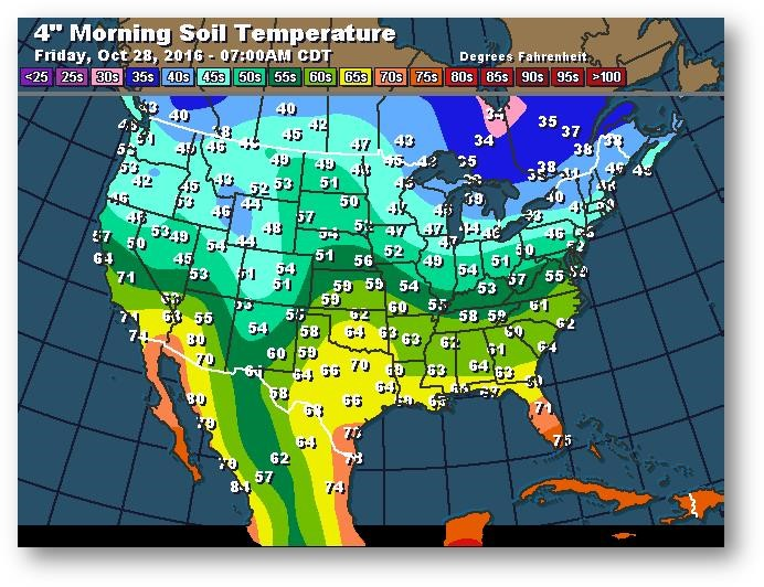 Température du sol en matinée à une profondeur de 4 pouces (degrés Farenheit)