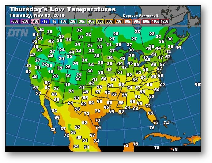Prévisions des températures les plus basses (degrés Farenheit)