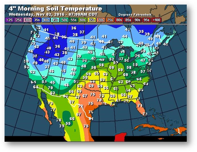 Température du sol en matinée à une profondeur de 4 pouces (degrés Farenheit)