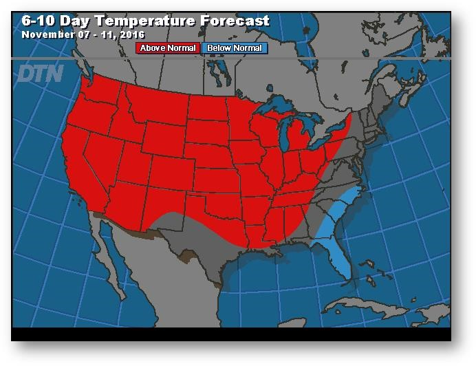 Prévisions de températures pour les 6 à 10 prochains jours