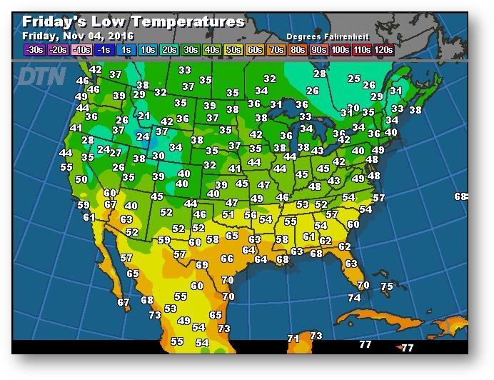 Prévisions des températures les plus basses (degrés Farenheit)