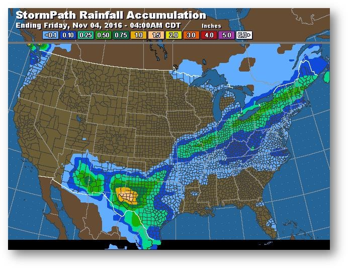 Trajectoire de tempête – Accumulation de précipitations (pouces)