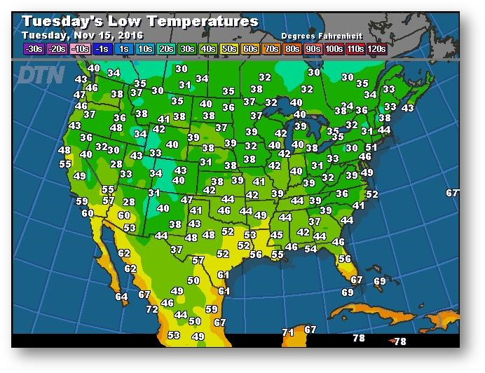 Prévisions des températures les plus basses (degrés Farenheit)