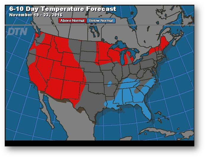 Prévisions de températures pour les 6 à 10 prochains jours