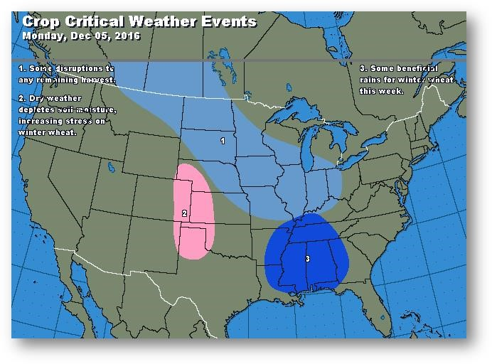 La séance de nuit a été tranquille; les prix du maïs n'ont pas réussi à suivre ceux du soja à la hausse. Le raffermissement des prix vendredi est attribué à une correction technique; l'analyse stochastique indiquant une survente considérable à l'appui d'un rebondissement. Les prix ont testé la moyenne mobile à 100 jours à 3,5025$ au cours de la nuit, mais ne l'ont toujours pas traversée. Le rapport COT de vendredi dernier indique une position nette courte de 65 milliers de contrats pour les fonds gérés en date du 29 novembre, ce qui représente une augmentation de 20 000 contrats par rapport à la semaine précédente. Comme les fonds ont procédé à des ventes à la fin de la semaine, le total est vraisemblablement plus élevé aujourd'hui. Les prix devraient demeurer neutres à l'intérieur de la fourchette avec un potentiel de hausse limité à moins d'un élément déclencheur fondamental.