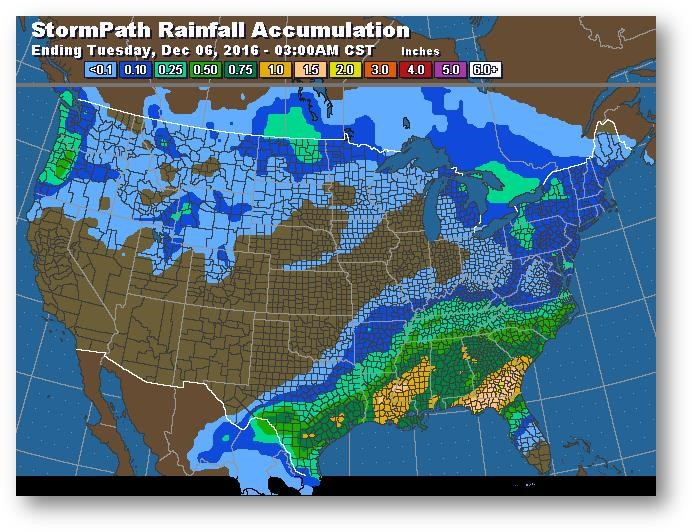 Trajectoire de tempête – Accumulation de précipitations (pouces)