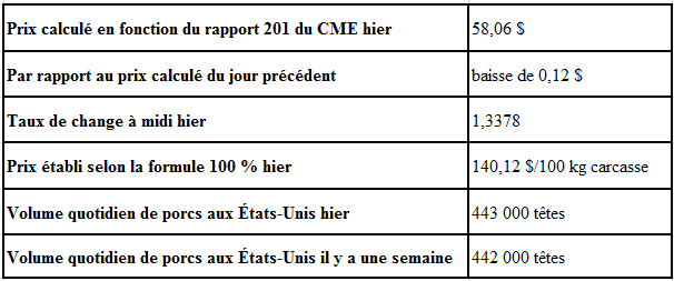 Évolution du prix calculé en fonction du rapport 201 du CME : baisse prévue de 0,10$/100lb