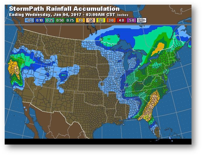 Trajectoire de tempête – Accumulation de précipitations (pouces)