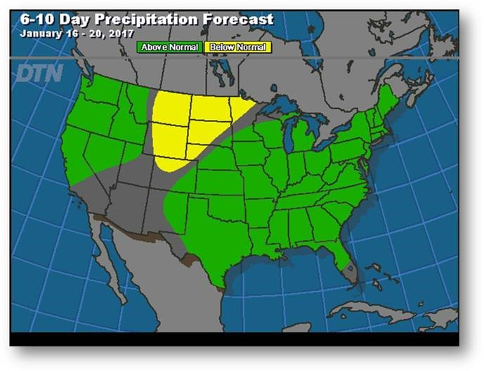 Prévisions de précipitation pour les 6 à 10 prochains jours