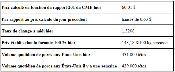 Évolution du prix calculé en fonction du rapport 201 du CME : baisse prévue de 18,27$/100lb