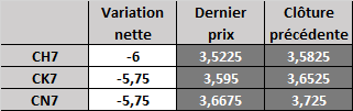 Contrat à terme du maïs à 6 h HNC mercredi : en baisse