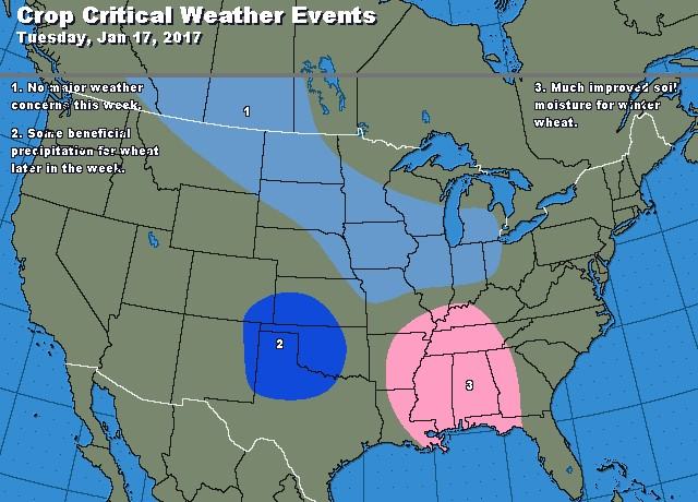 Les prix se sont raffermis en ce début de semaine. De fortes précipitations en Argentine au cours de la fin de semaine ont déclenché des couvertures de positions courtes. Le rapport du COT de vendredi a indiqué que les fonds gérés détenaient une position nette courte de 77 000 contrats. Il y avait eu une bonne couverture de positions courtes la semaine précédente, mais il y a possibilité de hausse si la couverture se poursuit. Le contrat à terme de mars (CH7) teste actuellement le sommet de la fourchette. La force dans le soja offre du support et pourrait être suffisante pour pousser le maïs à la moyenne mobile à 200 jours à 3,70$. On s'attend à voir une augmentation des ventes des producteurs.