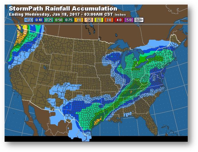 Trajectoire de tempête – Accumulation de précipitations (pouces)