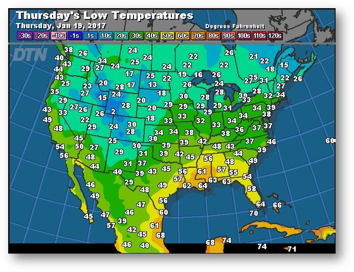 Prévisions des températures les plus basses (degrés Farenheit)