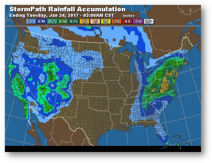 Trajectoire de tempête – Accumulation de précipitations (pouces)