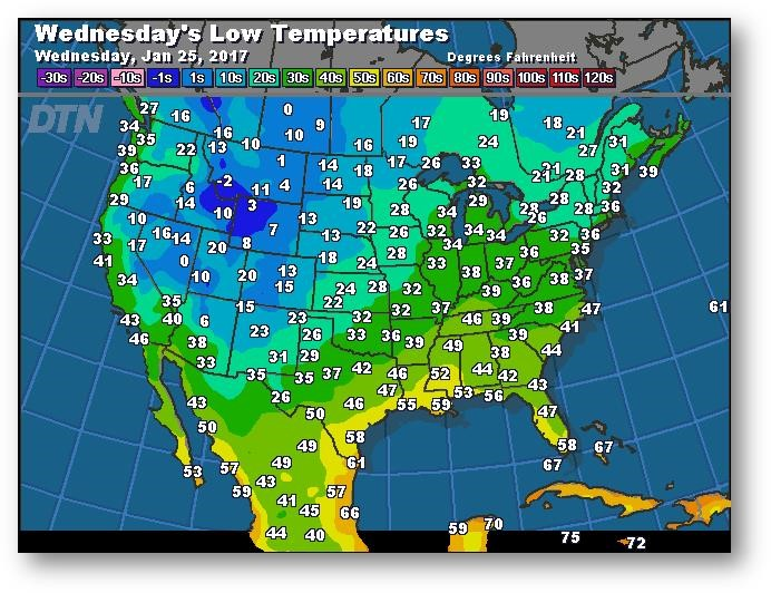 Prévisions des températures les plus basses (degrés Farenheit)