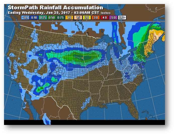 Trajectoire de tempête – Accumulation de précipitations (pouces)