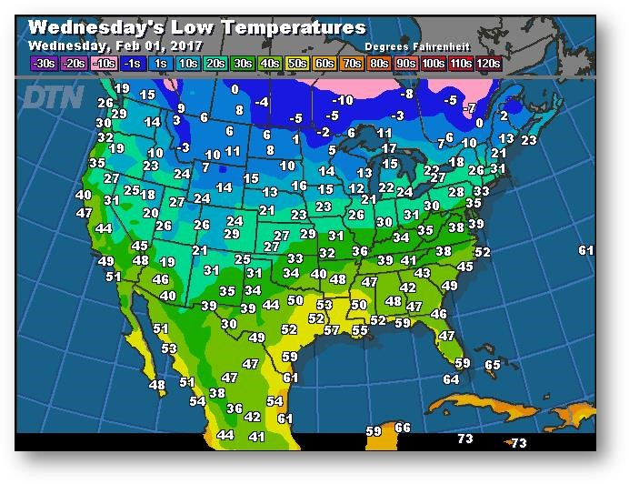 Prévisions des températures les plus basses (degrés Farenheit)