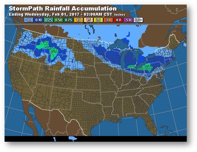 Trajectoire de tempête – Accumulation de précipitations (pouces)