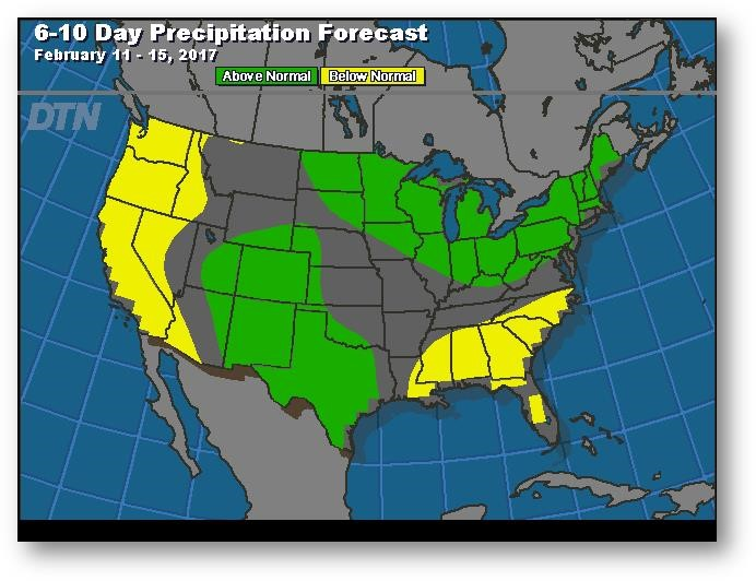 Prévisions de précipitation pour les 6 à 10 prochains jours