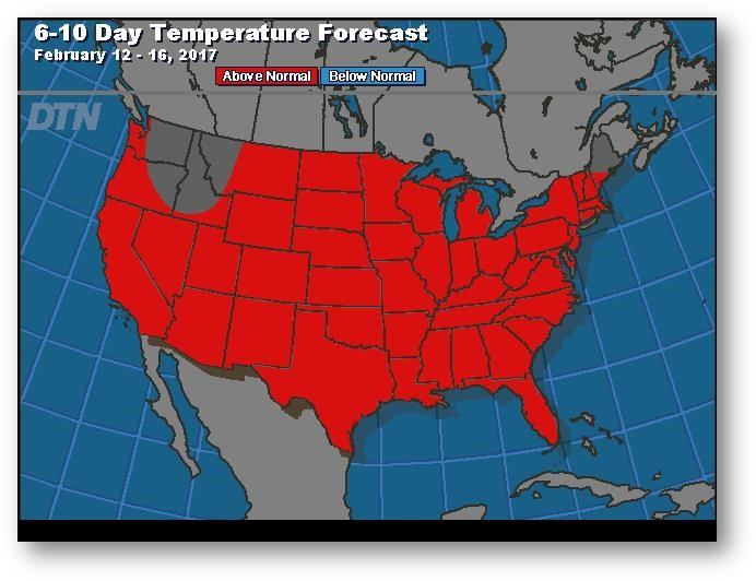 Prévisions de températures pour les 6 à 10 prochains jours