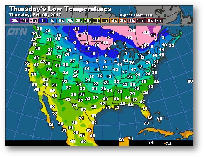 Prévisions des températures les plus basses (degrés Farenheit)
