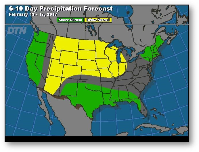 Prévisions de précipitation pour les 6 à 10 prochains jours