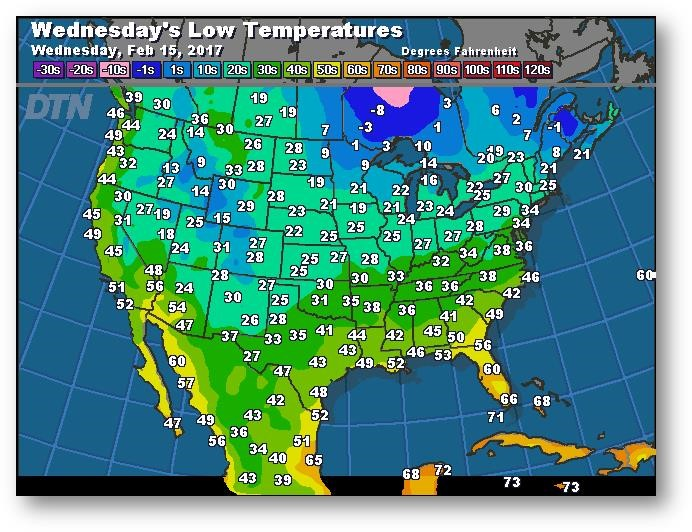 Prévisions des températures les plus basses (degrés Farenheit)