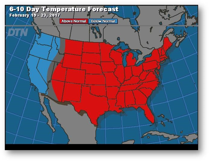 Prévisions de températures pour les 6 à 10 prochains jours