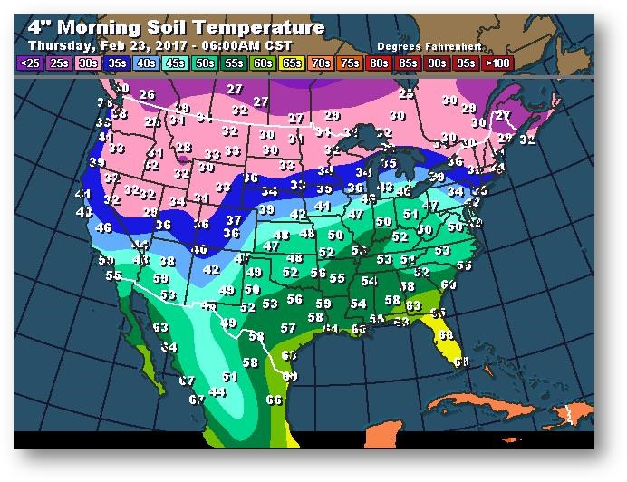 Température du sol en matinée à une profondeur de 4 pouces (degrés Farenheit)