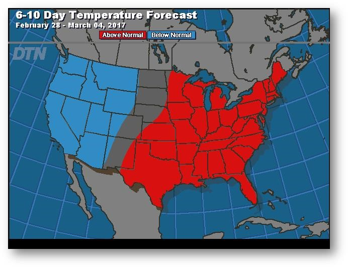 Prévisions de températures pour les 6 à 10 prochains jours