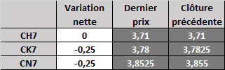 Contrat à terme du maïs à 6 h HNC jeudi : en légère baisse