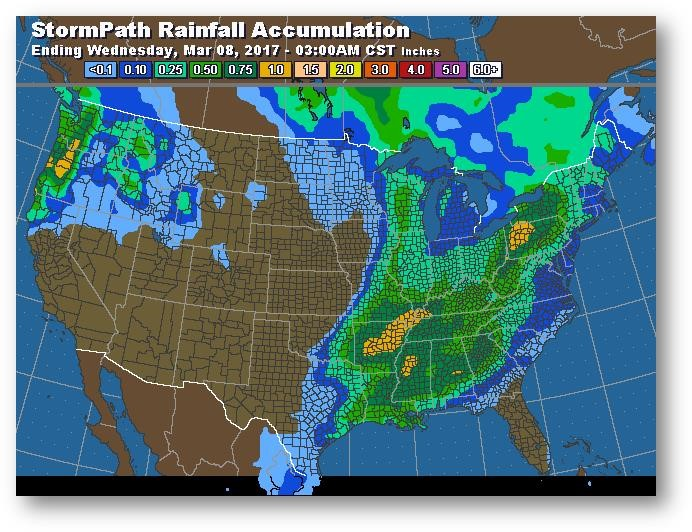 Trajectoire de tempête – Accumulation de précipitations (pouces)