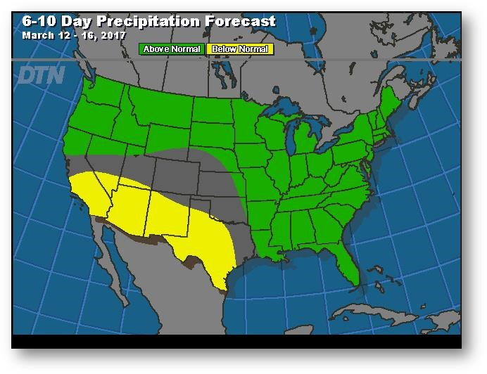 Prévisions de précipitation pour les 6 à 10 prochains jours
