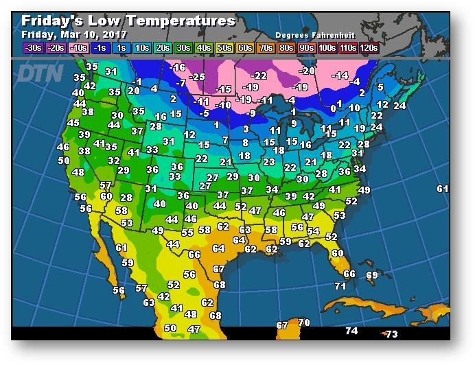 Prévisions des températures les plus basses (degrés Farenheit)