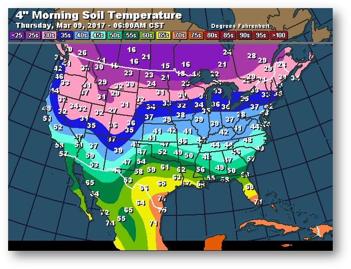 Température du sol en matinée à une profondeur de 4 pouces (degrés Farenheit)