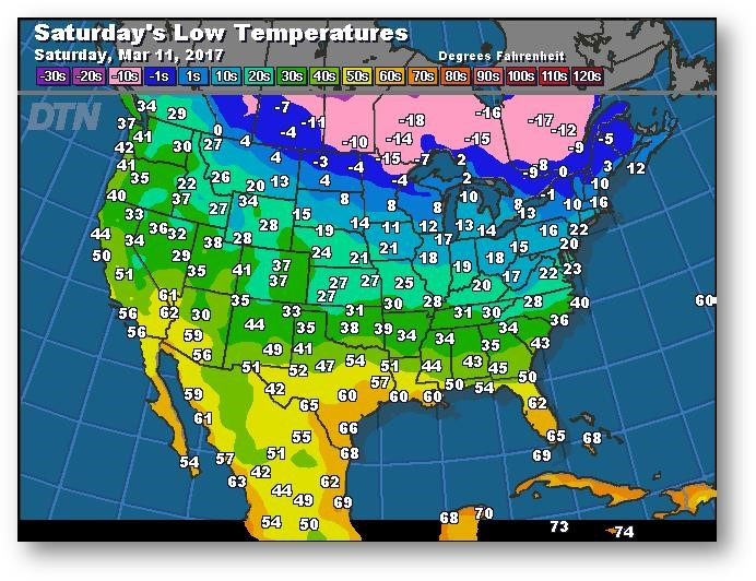 Prévisions des températures les plus basses (degrés Farenheit)