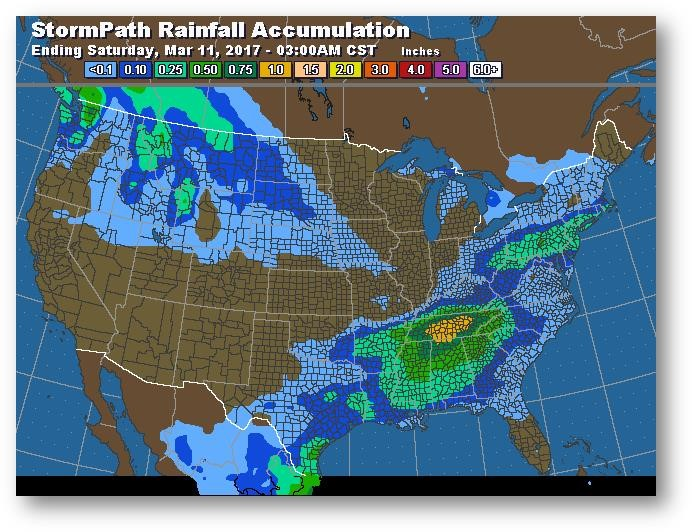 Trajectoire de tempête – Accumulation de précipitations (pouces)