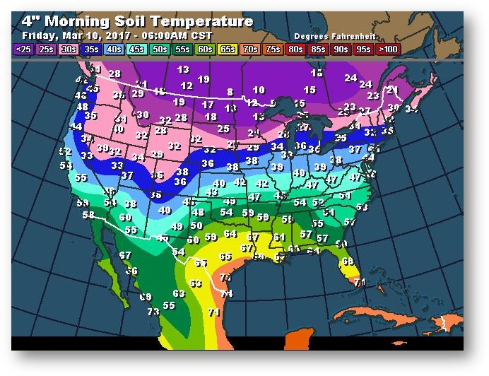 Température du sol en matinée à une profondeur de 4 pouces (degrés Farenheit)