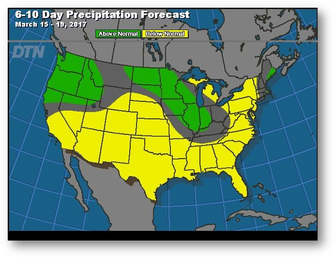 Prévisions de précipitation pour les 6 à 10 prochains jours