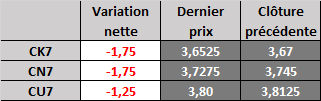 Contrat à terme du maïs à 6 h HNC vendredi : en baisse