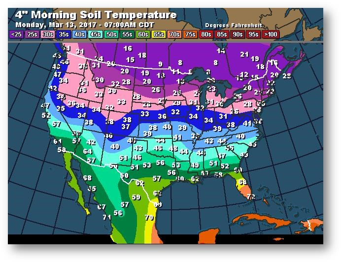 Température du sol en matinée à une profondeur de 4 pouces (degrés Farenheit)