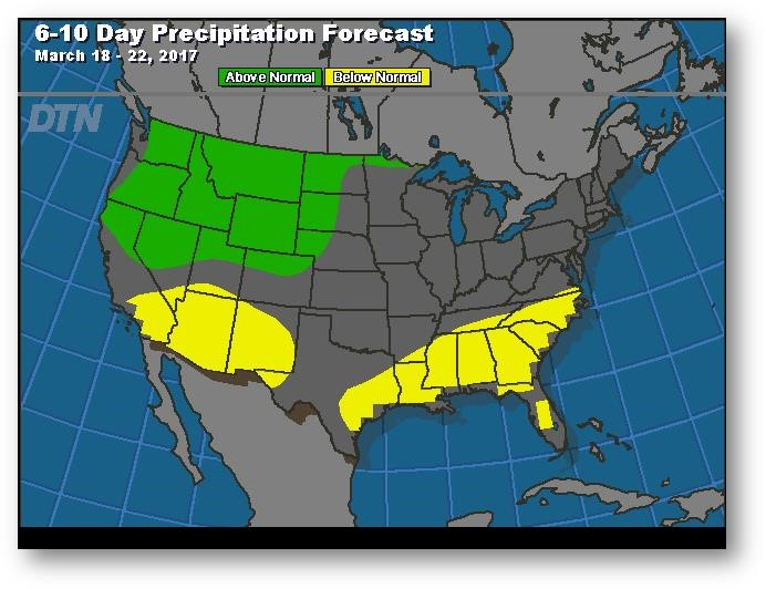 Prévisions de précipitation pour les 6 à 10 prochains jours