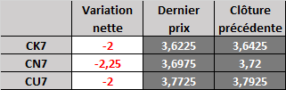 Contrat à terme du maïs à 6 h HNC lundi : en baisse