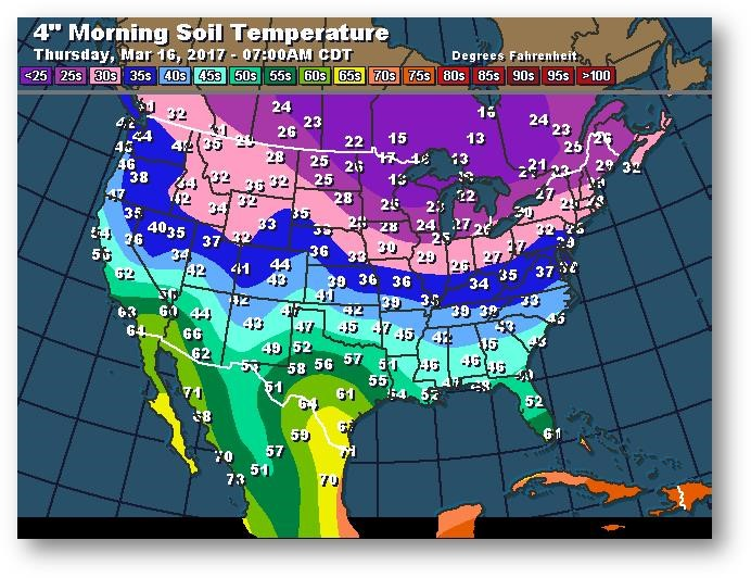 Température du sol en matinée à une profondeur de 4 pouces (degrés Farenheit)