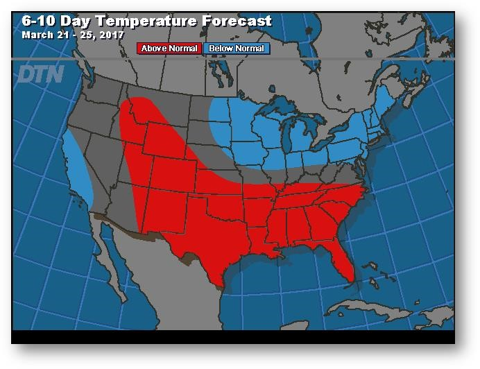 Prévisions de températures pour les 6 à 10 prochains jours