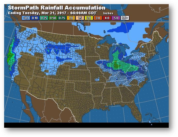 Le contrat à terme de mais est en hausse de 0,02$ et commence le printemps sur une note positive. Le rapport de vendredi après-midi dernier indique que les négociants non commerciaux ont diminué leur position nette longue de 198 890 à 112 805 contrats en date du 14 mars. Il y a eu liquidation considérable lorsque les prix ont chuté à leur plus bas niveau en huit semaines. La rapidité de la réponse du marché et la demande active semblent avoir aidé les prix à rebondir depuis le 14 mars. Cependant, il serait étonnant de voir les prix monter bien plus haut puisque la récolte de maïs au Brésil connaît un bon départ. On ne prévoit pas tellement de pluie dans le centre du Brésil cette semaine, mais il reste encore du temps avec la pollinisation en avril. Aux États-Unis, on prévoit des tempêtes en Illinois et en Indiana avec des précipitations bénéfiques dans le sud et le centre des plaines cette semaine. Le contrat à terme de mai se maintient toujours au-dessus de son creux de 2017 à 3,575$.
