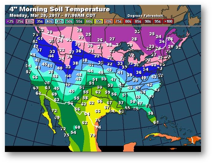 Température du sol en matinée à une profondeur de 4 pouces (degrés Farenheit)